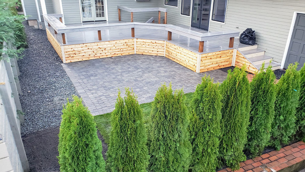 New Deck, Patio, and Hedge