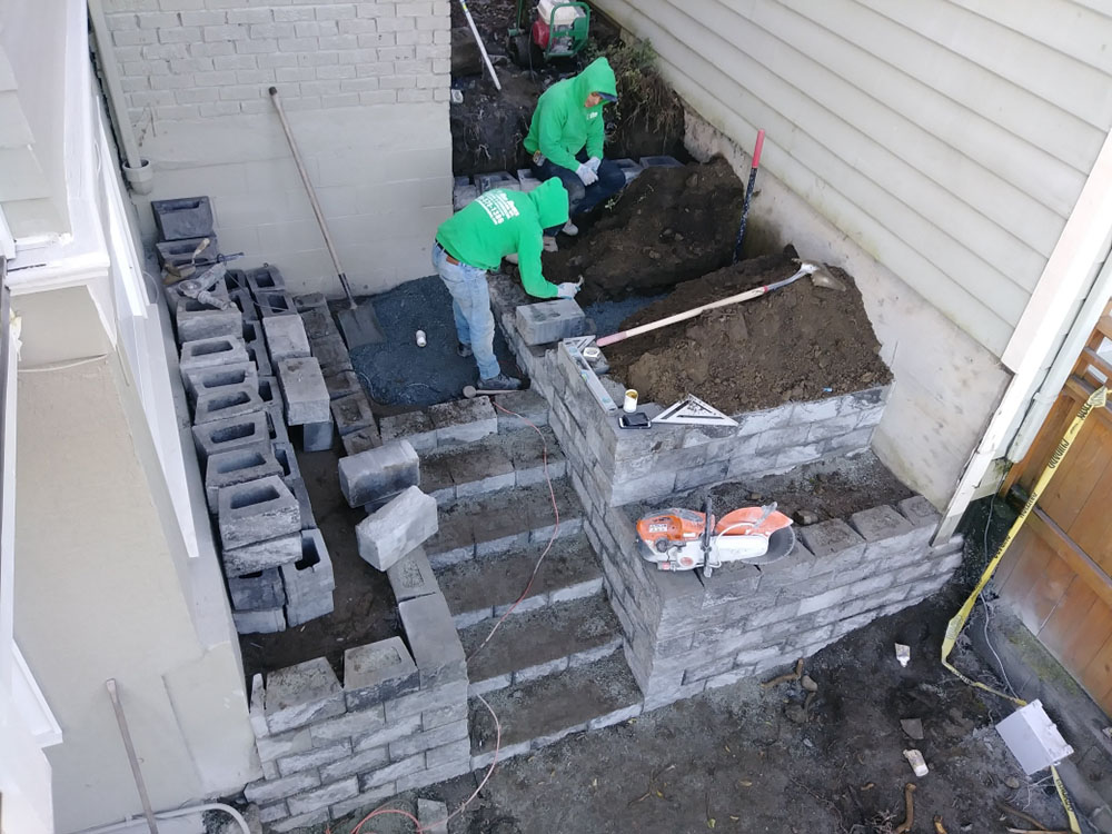 Retaining Wall, Patio, and Fence